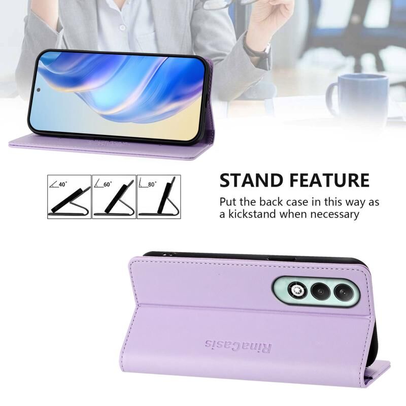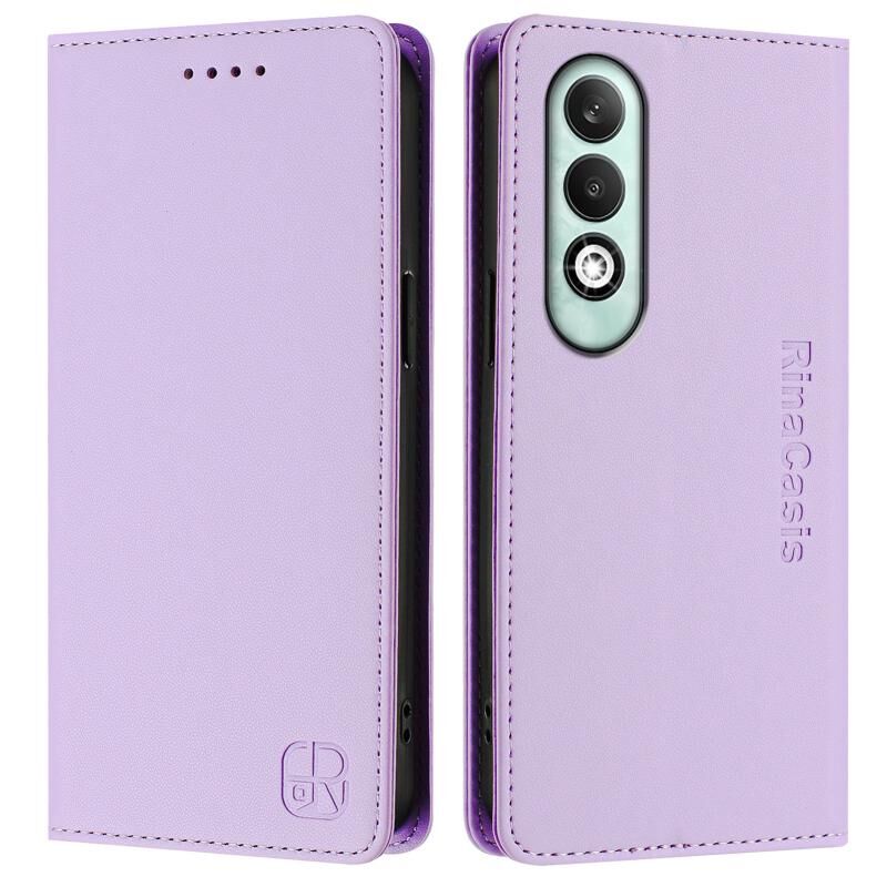 Θήκη τηλεφώνου από δέρμα με μαγνητική απορρόφηση και διπλή πτύχωση RFID για OPPO K12x 5G Global RC01 (ανοιχτό μωβ)