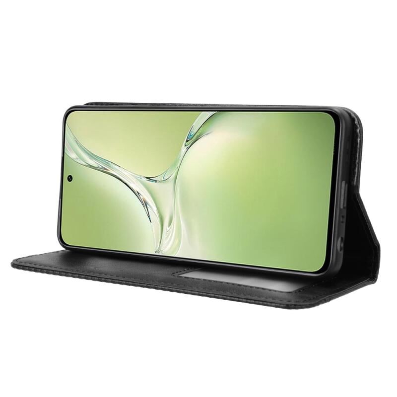 Για OPPO K12X 5G / OnePlus Nord CE4 Lite 5G Μαγνητική πόρπη ρετρό υφή δερμάτινη θήκη τηλεφώνου (μαύρο)
