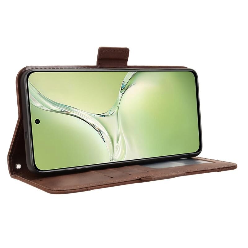Για OPPO K12X 5G / OnePlus Nord CE4 Lite 5G δέρμα αίσθηση μοσχάρι υφή κάρτα υποδοχές δερμάτινη θήκη τηλεφώνου (καφέ)
