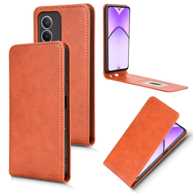 For OPPO K12X / A3 Pro Global Magnetic Vertical Flip Leather Phone Case(Brown)