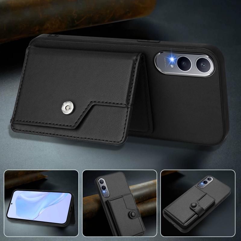 For OPPO K12x Button Card Bag RFID Anti-theft Phone Case(Black)