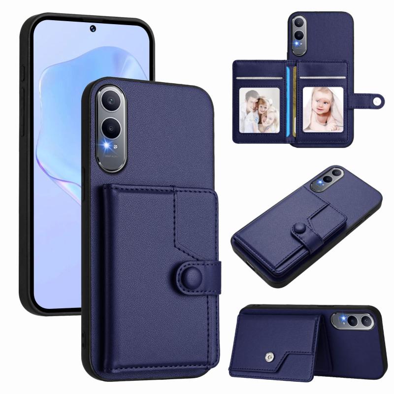 For OPPO K12x Button Card Bag RFID Anti-theft Phone Case(Blue)