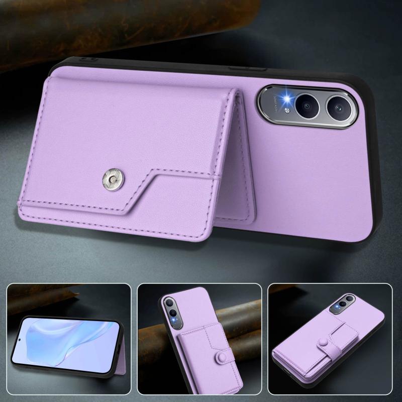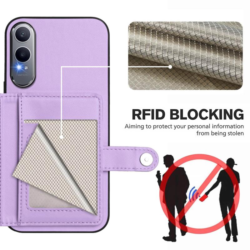 For OPPO K12x Button Card Bag RFID Anti-theft Phone Case(Purple)