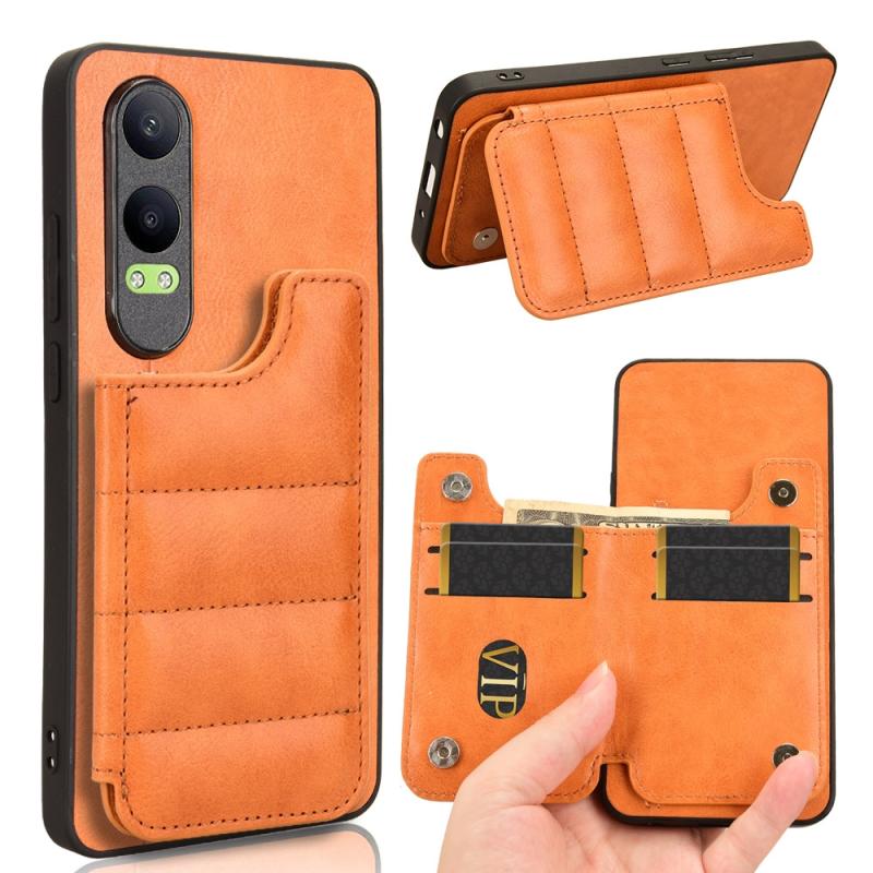 For OPPO K12x Cow Pattern Sewing Card Bag Phone Case(Orange)