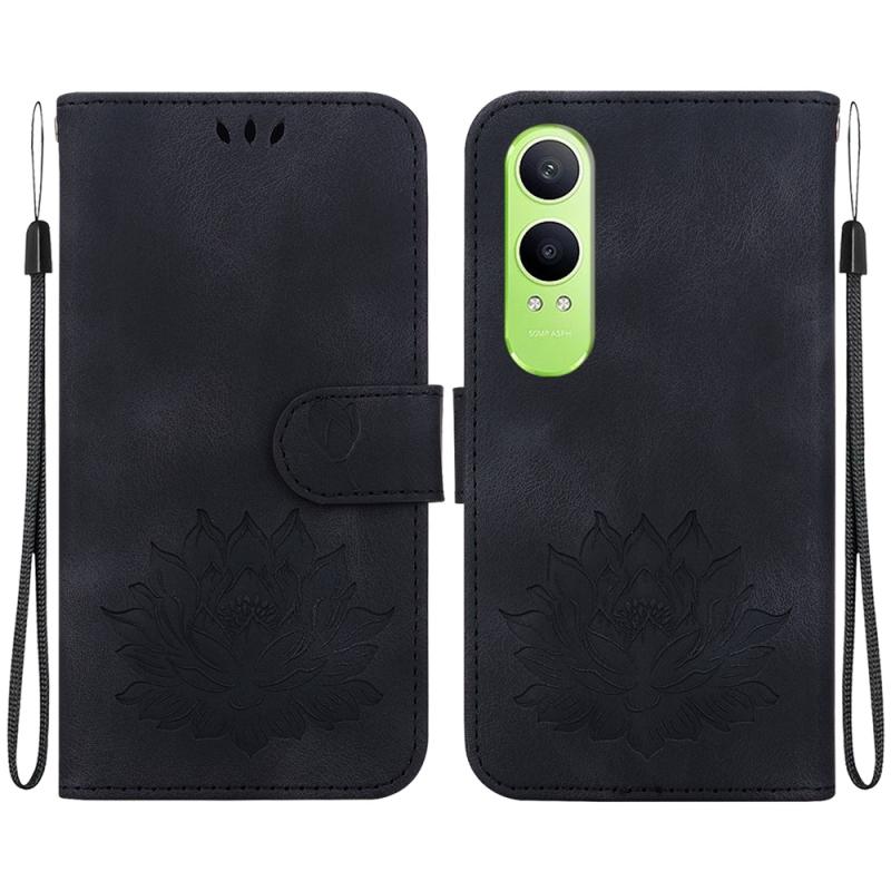 For OPPO K12x Lotus Embossed Leather Phone Case(Black)