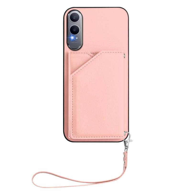 For OPPO K12X Skin Feel Four Card Slots Phone Case with Wrist Strap(Pink)