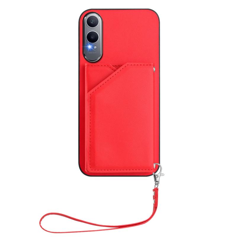 For OPPO K12X Skin Feel Four Card Slots Phone Case with Wrist Strap(Red)