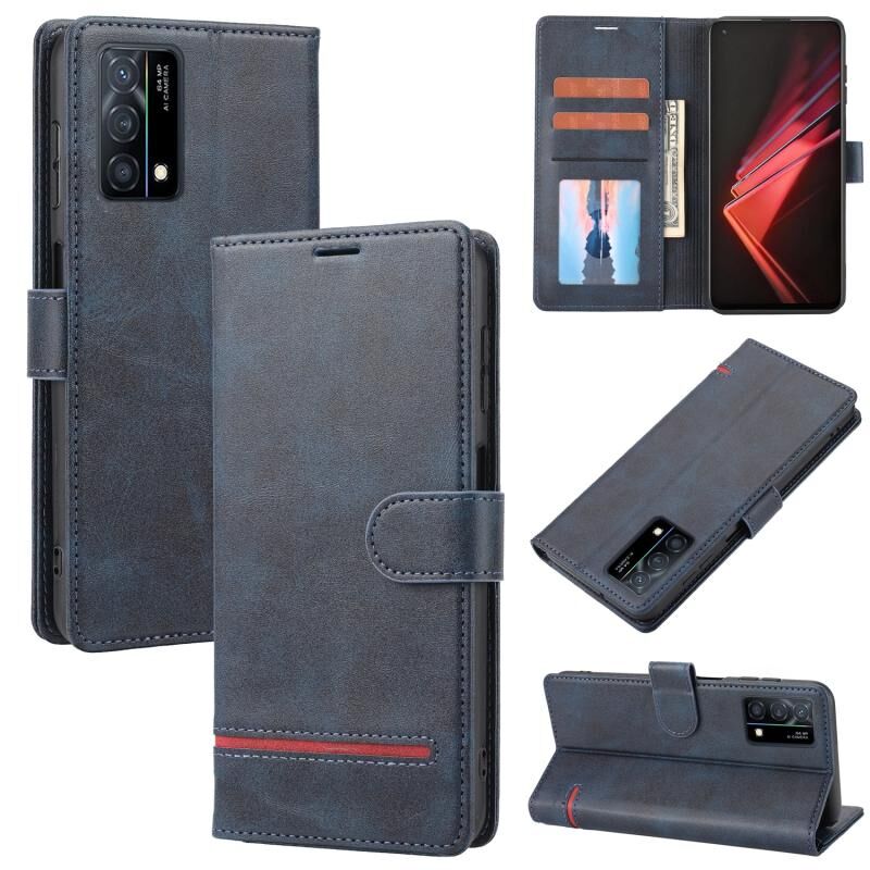 Για OPPO K9 Κλασικό πορτοφόλι Flip υπόθεση τηλεφώνου δερμάτινη θήκη (μπλε)