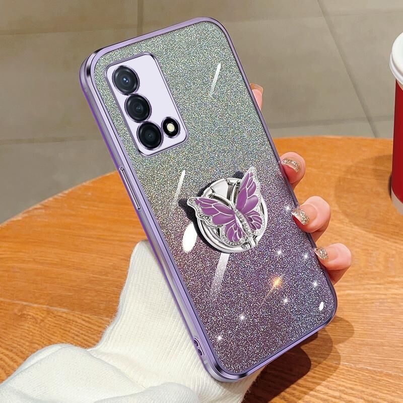Για OPPO K9 Επιμεταλλωμένο βαθμίδα Glitter πεταλούδα κάτοχος TPU τηλέφωνο υπόθεση (μωβ)