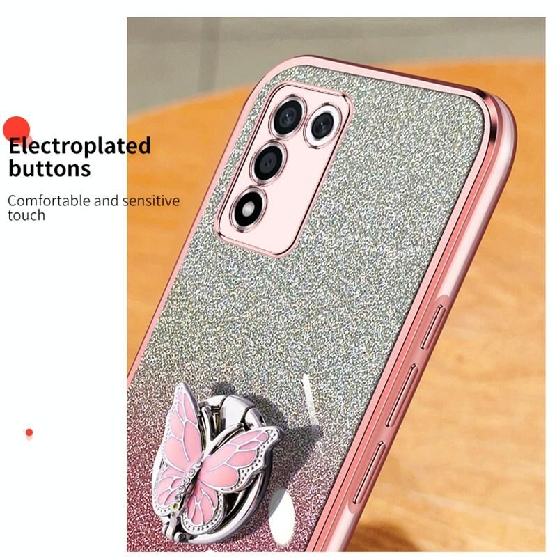 Για OPPO K9s Επιμεταλλωμένο διαβάθμιση Glitter πεταλούδα κάτοχος TPU τηλέφωνο υπόθεση (μωβ)
