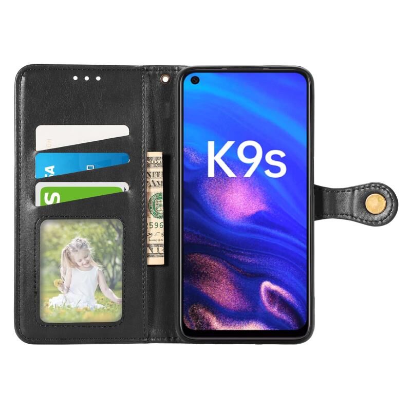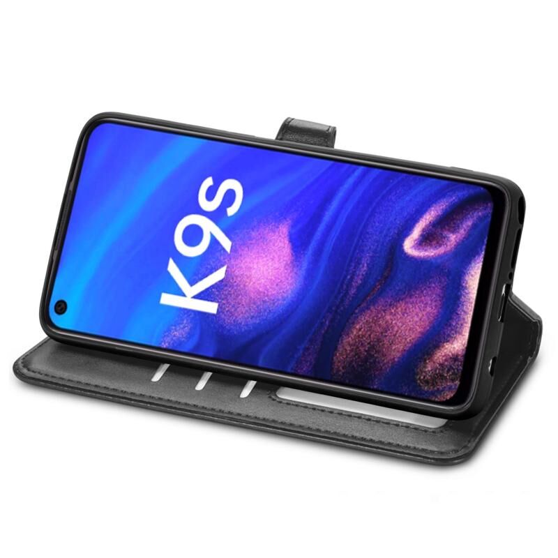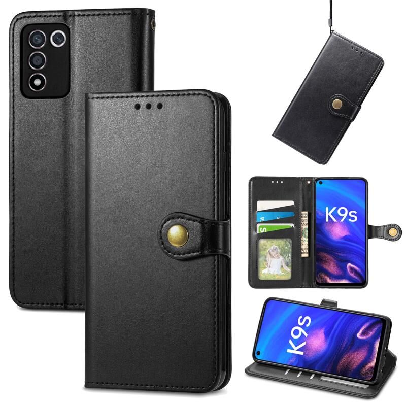 Για OPPO K9s Αμιγές χρώμα δέρμα πόρπη τηλέφωνο υπόθεση (Μαύρο)