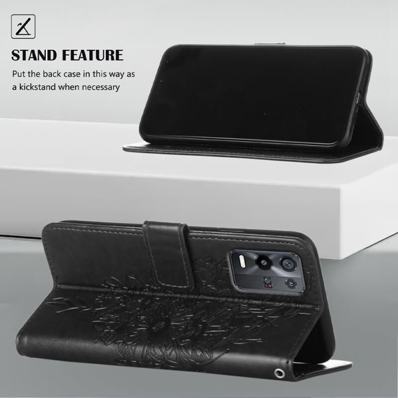 Θήκη τηλεφώνου από δέρμα με ανάγλυφο σχέδιο πεταλούδας για OPPO K9X 5G (Γκρι)