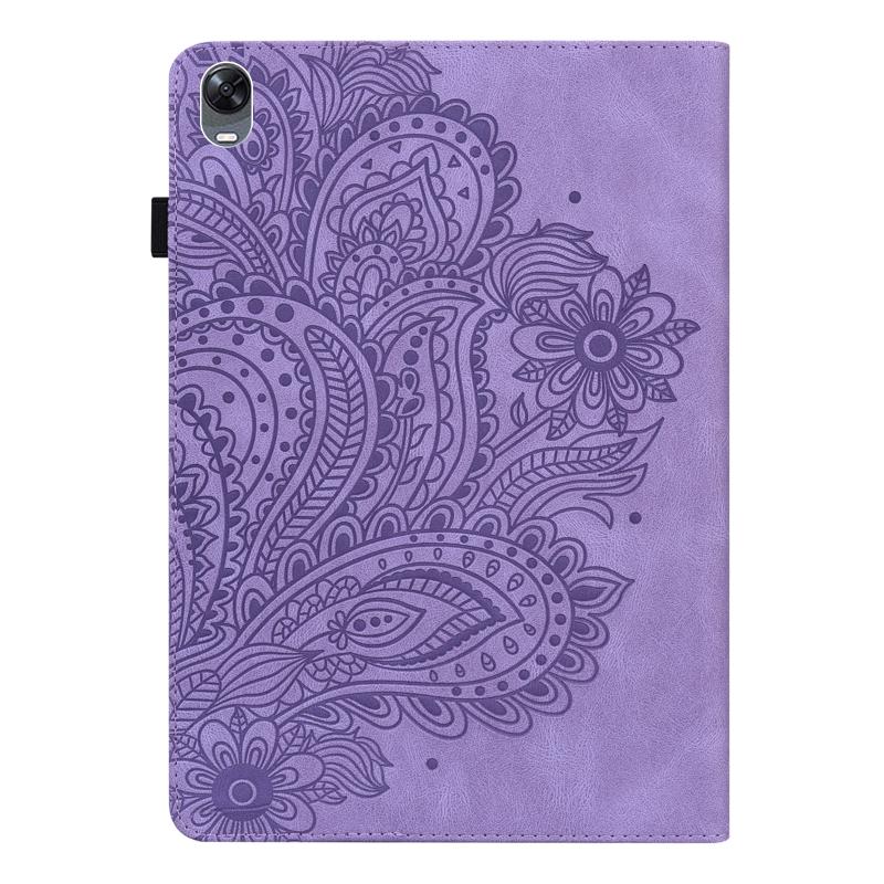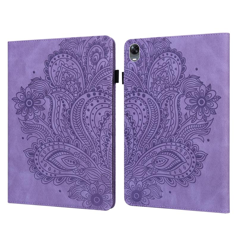 Θήκη ταμπλέτας για OPPO Pad 11 ιντσών, με ανάγλυφο σχέδιο παγωνιού, από TPU + Δερματίνη (Μωβ)