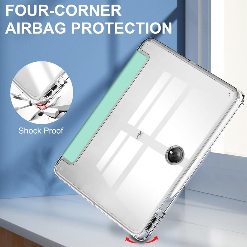 Διαφανής θήκη πλάτης με δερμάτινο πτυσσόμενο κάλυμμα 3 πτυχών για OPPO Pad 2 (Μέντας πράσινο)