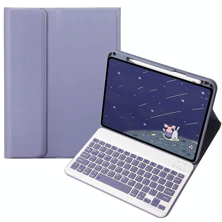 Για OPPO Pad 3 / Pad 2, Θήκη Bluetooth με Δερμάτινη Επένδυση σε Ζαχαρένια Χρώματα, με Τετράγωνα Πλήκτρα (Ανοιχτό Μωβ)