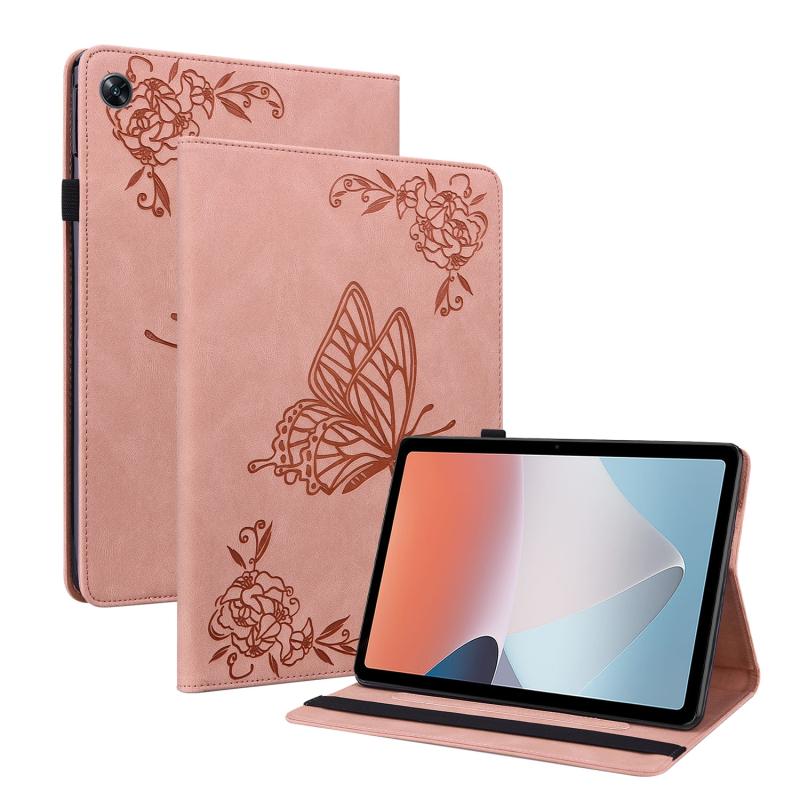 For OPPO Pad Air Butterfly Flower Embossed Leather Tablet Case(Rose Gold)