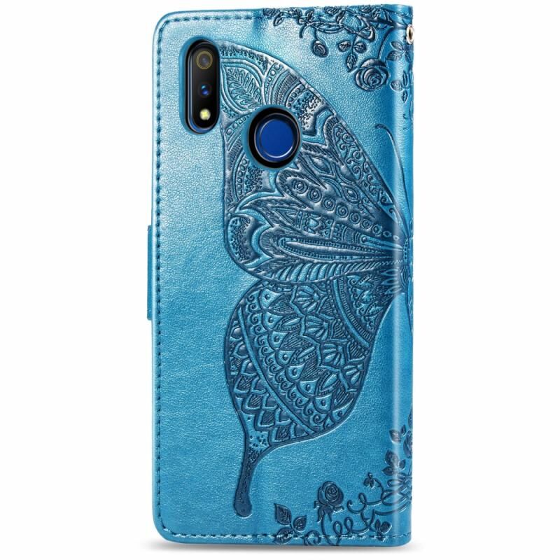 Θήκη δέρματος οριζόντιας αναδίπλωσης για OPPO Realme 3 Pro με ανάγλυφο σχέδιο πεταλούδας, λουλουδιών, βάση στήριξης / υποδοχή κάρτας / πορτοφόλι / κορδόνι (Μπλε)