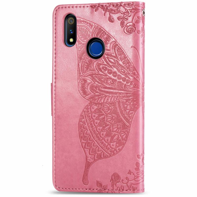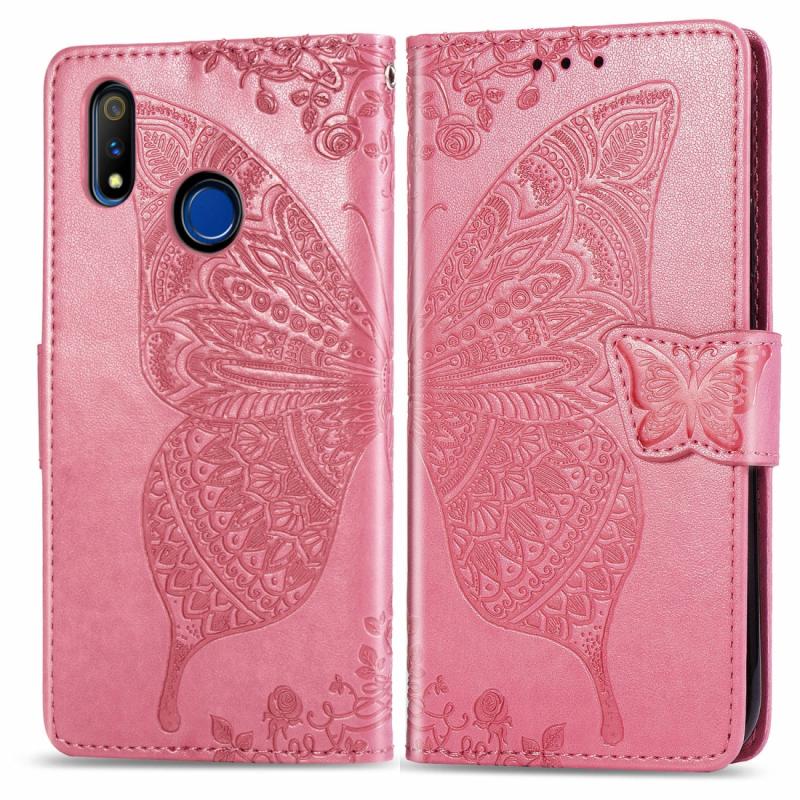 Θήκη δέρματος οριζόντιας αναδίπλωσης για OPPO Realme 3 Pro με ανάγλυφο σχέδιο πεταλούδας, λουλουδιών, βάση στήριξης / υποδοχή κάρτας / πορτοφόλι / κορδόνι (Γκρι)