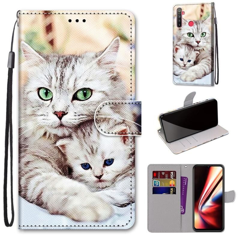For OPPO Realme 5 / 5s / 5i / C3 / C3i / 6i / Narzo10 / 10A / 20A Coloured Drawing Cross Texture Horizontal Flip PU Leather Case with Holder & Card Slots & Wallet & Lanyard(Big Cat Holding Kitten)