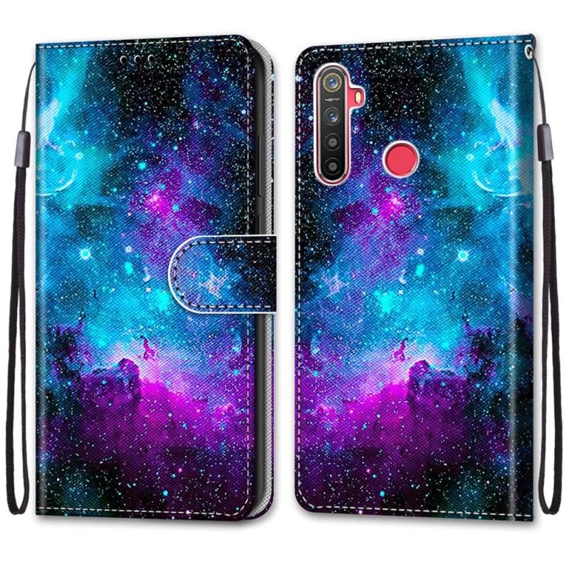 For OPPO Realme 5 / 5s / 5i / C3 / C3i / 6i / Narzo10 / 10A / 20A Coloured Drawing Cross Texture Horizontal Flip PU Leather Case with Holder & Card Slots & Wallet & Lanyard(Purple Green Starry Sky)