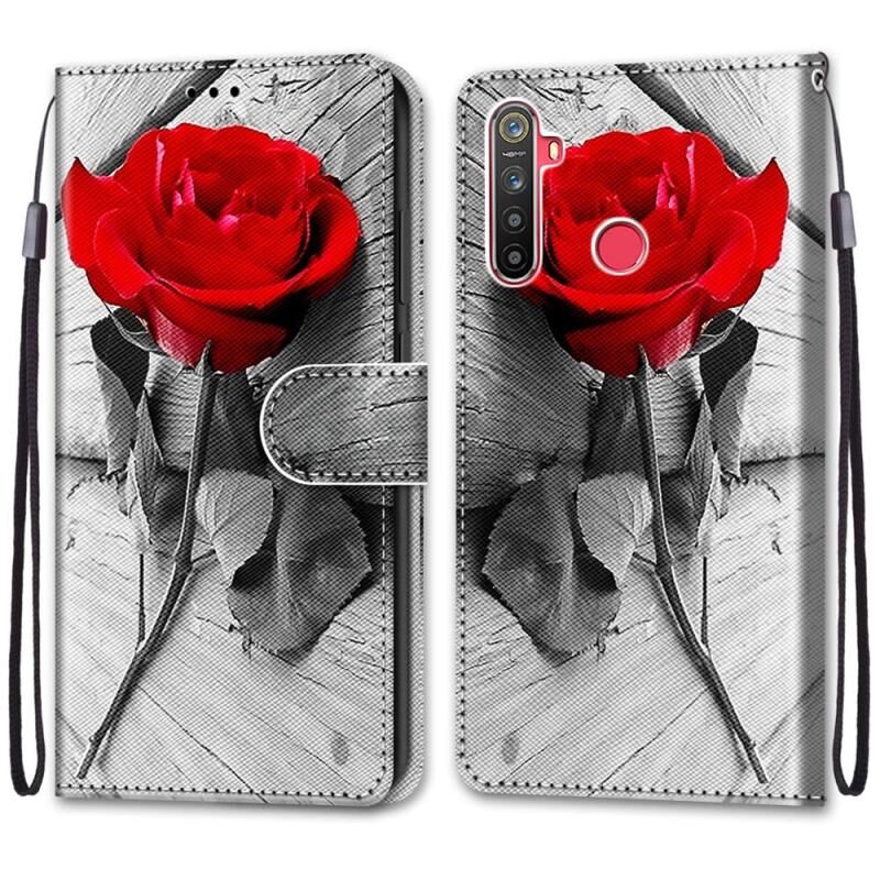 For OPPO Realme 5 / 5s / 5i / C3 / C3i / 6i / Narzo10 / 10A / 20A Coloured Drawing Cross Texture Horizontal Flip PU Leather Case with Holder & Card Slots & Wallet & Lanyard(Wood Red Rose)