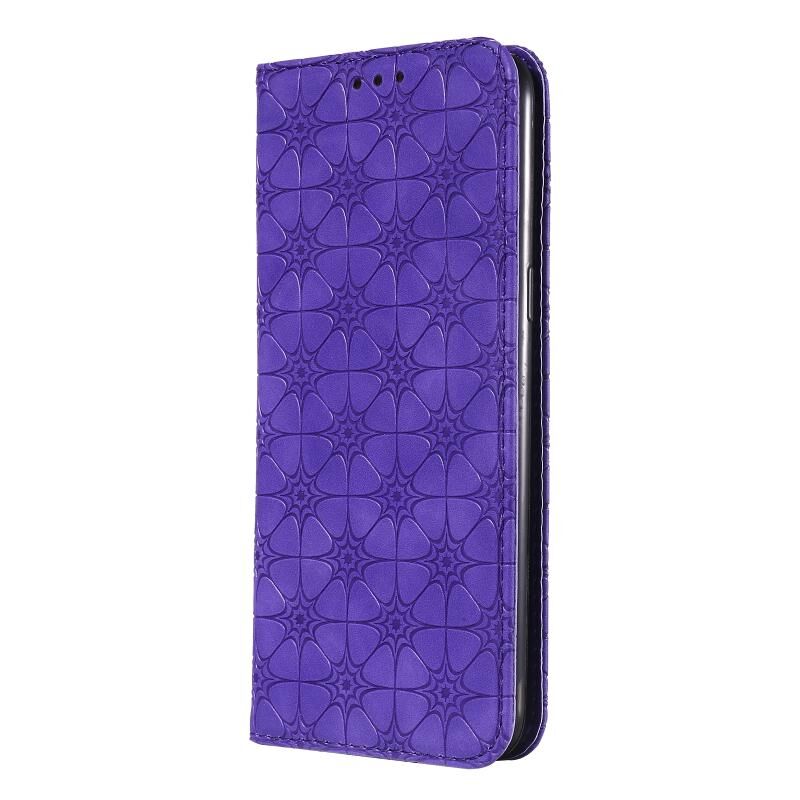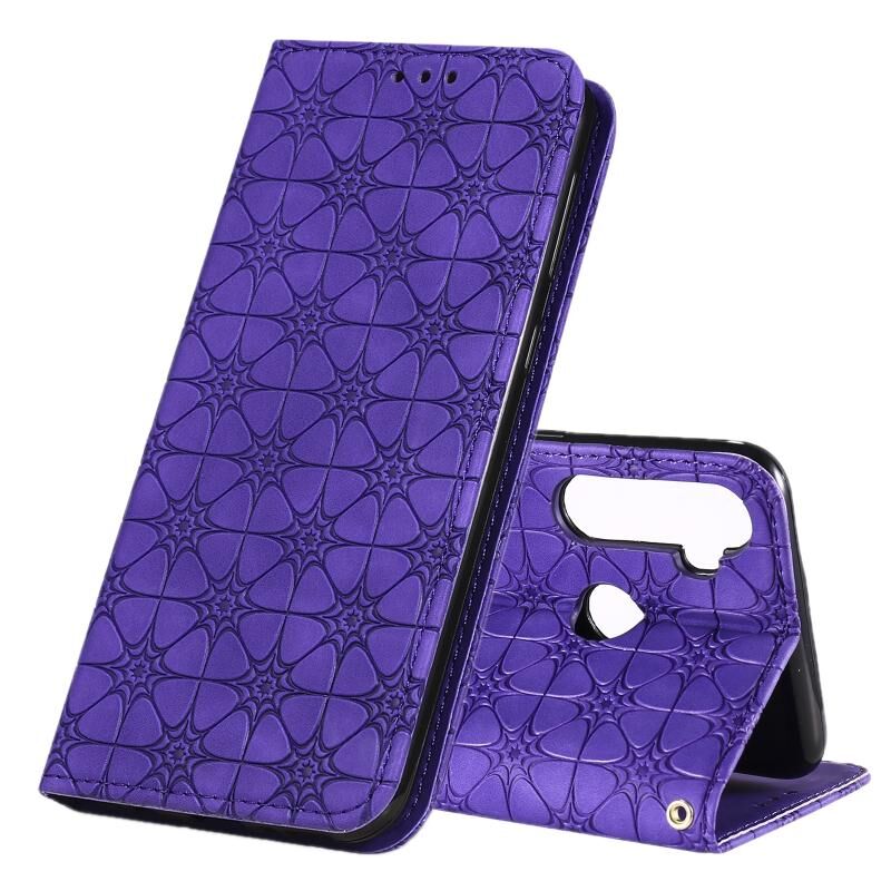 For OPPO Realme 5 / C3 / 6i Lucky Flowers Embossing Pattern Magnetic Horizontal Flip Leather Case with Holder & Card Slots(Purple)