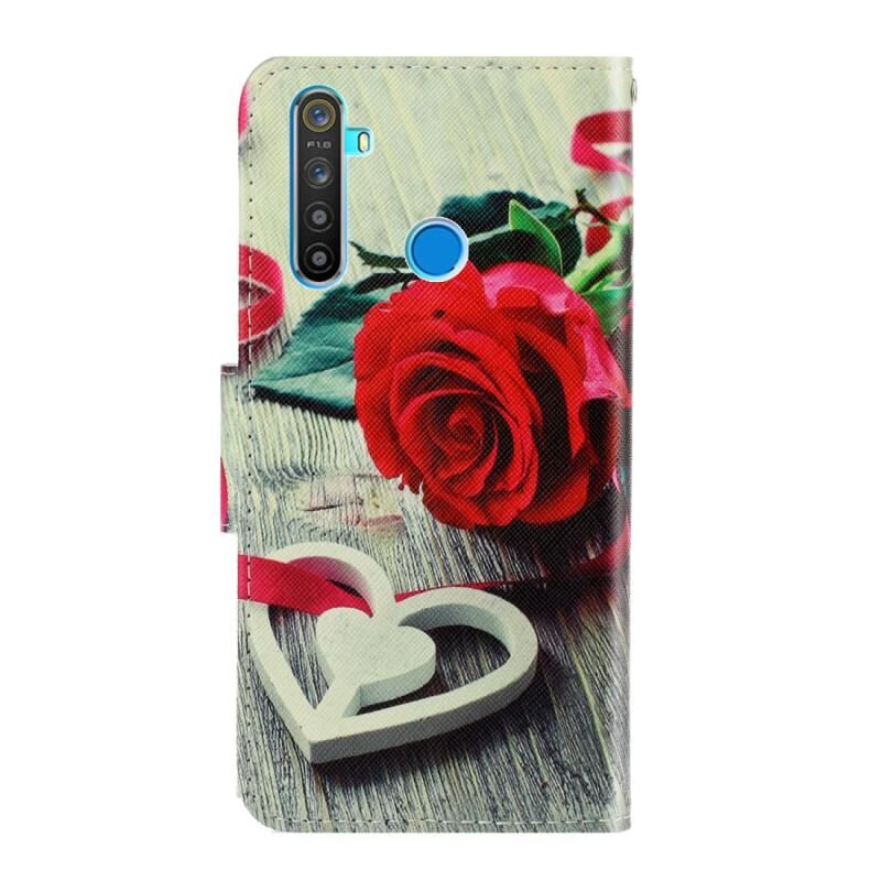 Θήκη για OPPO Realme 5 Pro 3D με έγχρωμο σχέδιο, οριζόντια αναδίπλωση από δερματίνη PU με βάση στήριξης & υποδοχές καρτών & πορτοφόλι (Κόκκινο Λουλούδι)