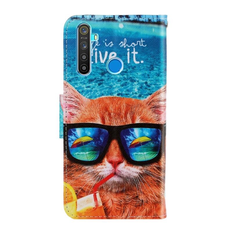 Για OPPO Realme 5 Pro 3D Χρωματιστή Ζωγραφική Οριζόντια Θήκη από Δερματίνη PU με Στήριξη & Θήκες Καρτών & Πορτοφόλι (Γάτα κάτω από το νερό)
