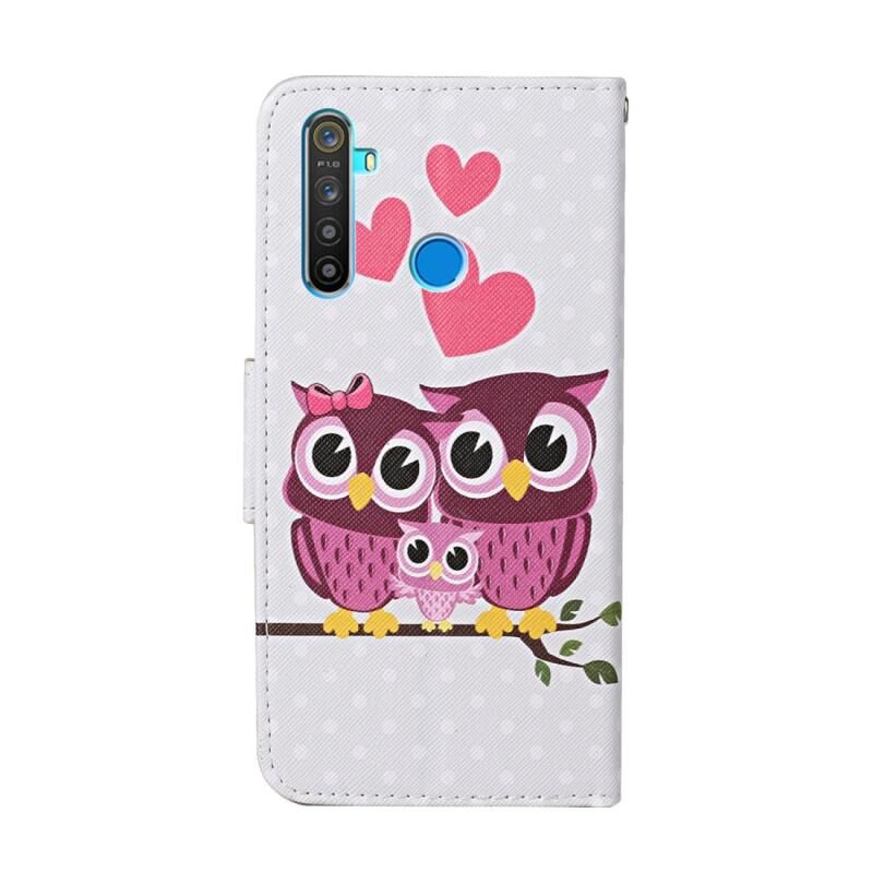 Θήκη δέρματος οριζόντιας αναδίπλωσης με σχέδιο πολύχρωμης ζωγραφικής για OPPO Realme 5 Pro με βάση στήριξης & υποδοχές καρτών & πορτοφόλι (Κουκουβάγια)