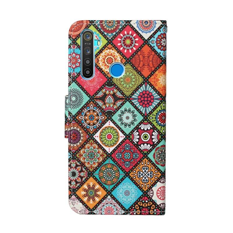 Θήκη δέρματος οριζόντιας αναδίπλωσης με σχέδιο πολύχρωμης ζωγραφικής για OPPO Realme 5 Pro με βάση στήριξης & υποδοχές καρτών & πορτοφόλι (Ρόμβος)