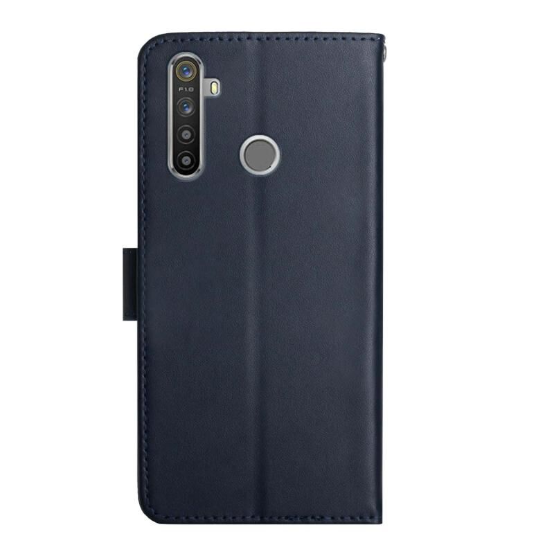 Θήκη τηλεφώνου οριζόντιας αναδίπλωσης από γνήσιο δέρμα για OPPO Realme 5 Pro, ανθεκτική στα δακτυλικά αποτυπώματα (Μαύρο)