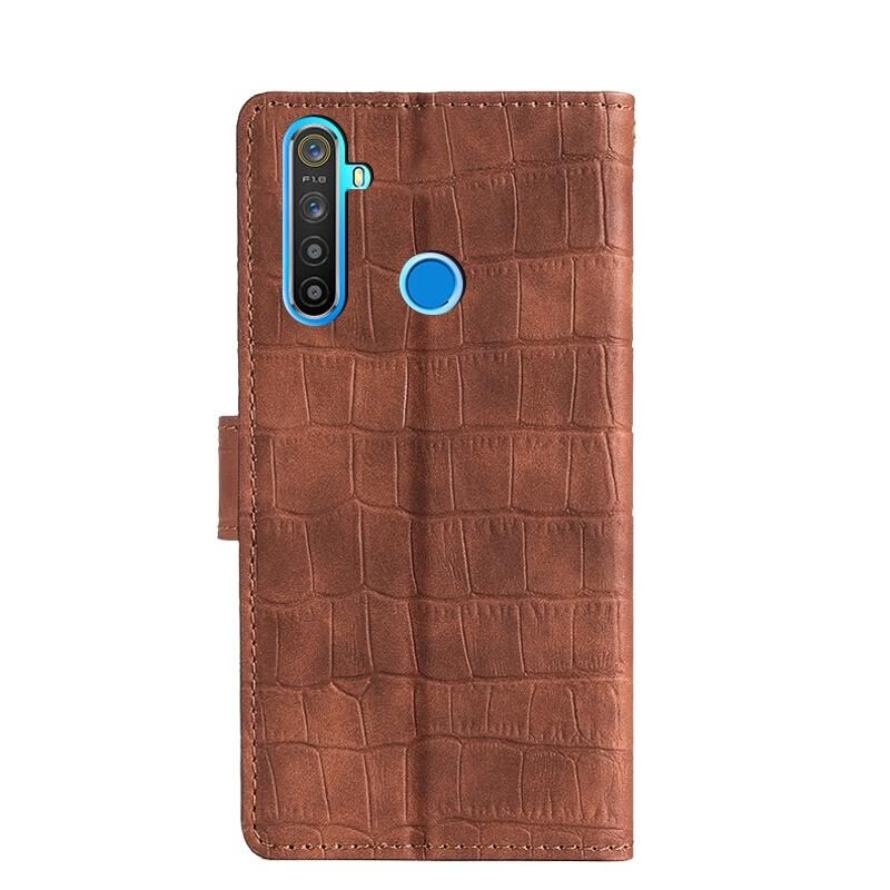 Θήκη τηλεφώνου από δερματίνη PU με μαγνητικό κούμπωμα και υφή δέρματος κροκόδειλου για OPPO Realme 5 (Μαύρο)