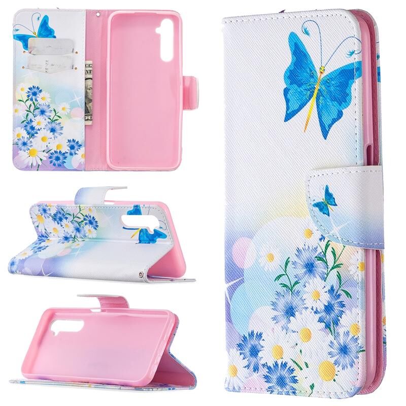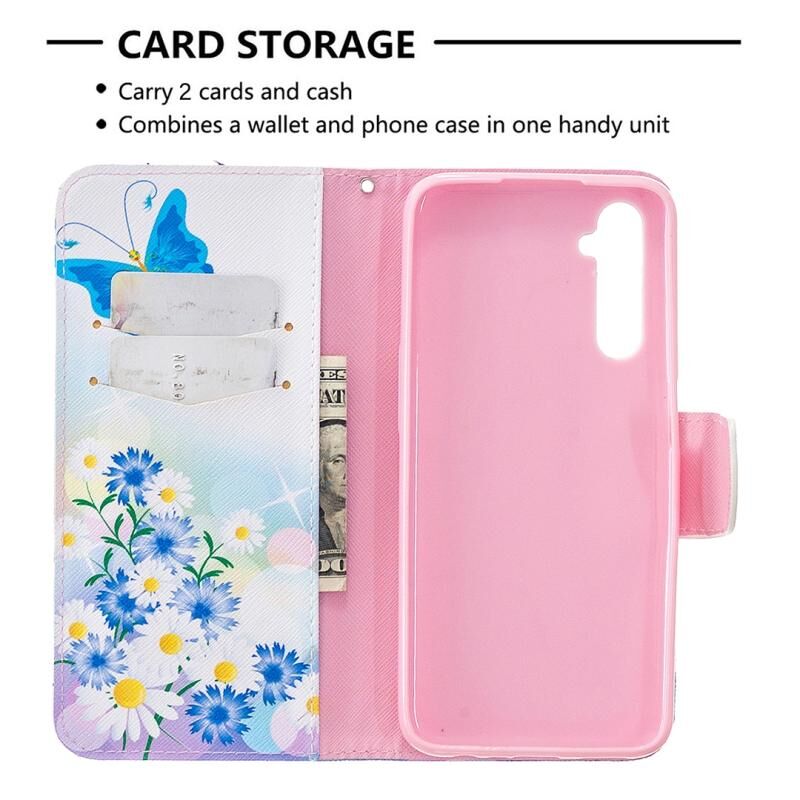 Θήκη δέρματος οριζόντιας αναδίπλωσης με σχέδιο πολύχρωμης ζωγραφικής για OPPO Realme 6 με βάση στήριξης & υποδοχές καρτών & πορτοφόλι (Αγάπη Πεταλούδας)
