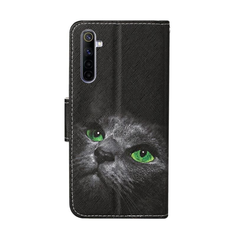 Θήκη δέρματος οριζόντιας αναδίπλωσης με σχέδιο πολύχρωμης ζωγραφικής για OPPO Realme 6 με βάση & υποδοχές καρτών & πορτοφόλι (Σχέδιο Γάτας)