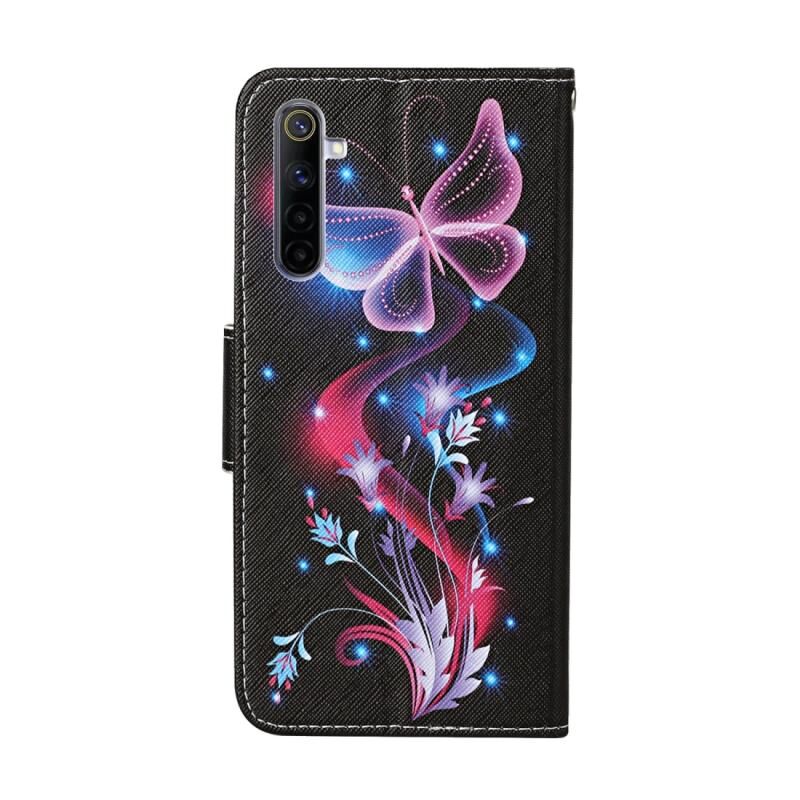 Θήκη δέρματος οριζόντιας αναδίπλωσης με σχέδιο πολύχρωμης ζωγραφικής για OPPO Realme 6 με βάση στήριξης & υποδοχές καρτών & πορτοφόλι (Χρώμα Πεταλούδα)