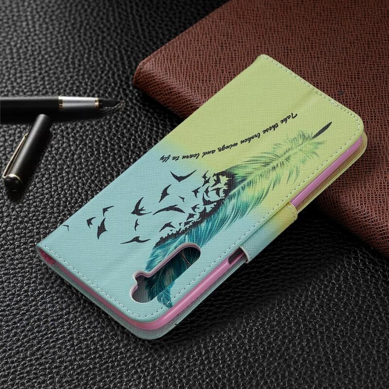 For OPPO Realme 6 Colored Drawing Pattern Horizontal Flip Leather Case with Holder & Card Slots & Wallet(Feather)