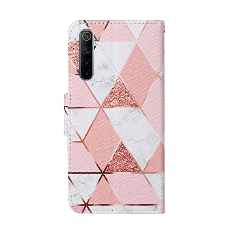 Θήκη δέρματος οριζόντιας αναδίπλωσης με σχέδιο έγχρωμης ζωγραφικής για OPPO Realme 6 με βάση στήριξης & υποδοχές καρτών & πορτοφόλι (Μάρμαρο)