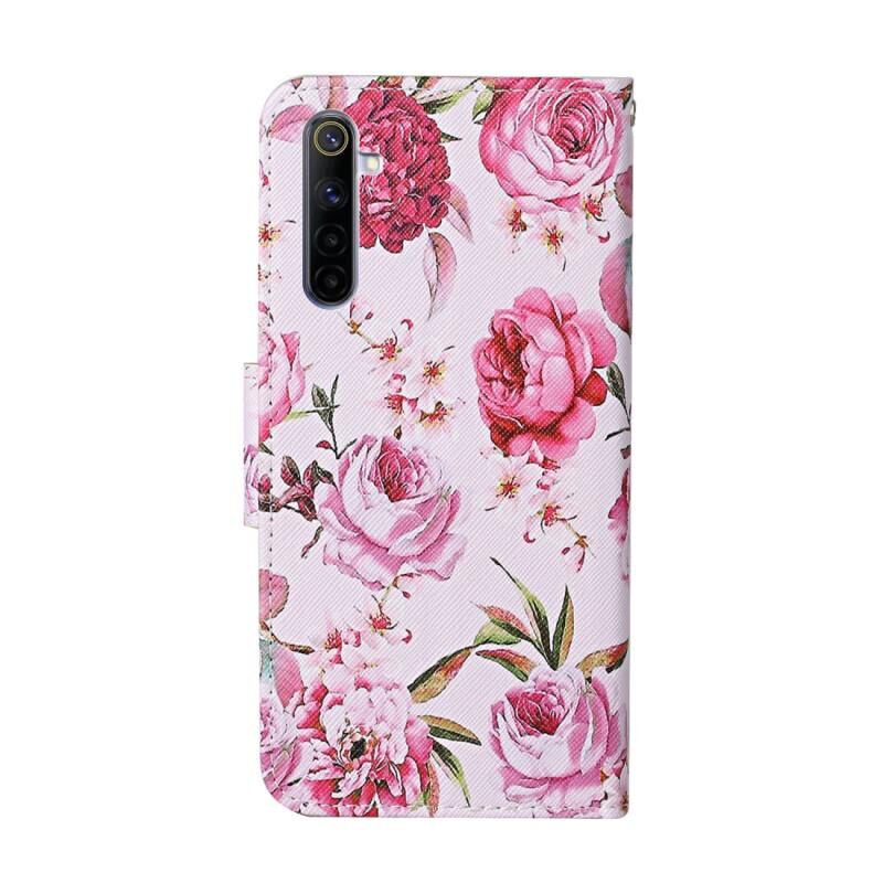 Θήκη δέρματος οριζόντιας αναδίπλωσης με σχέδιο πολύχρωμης ζωγραφικής για OPPO Realme 6 με βάση & υποδοχές καρτών & πορτοφόλι (Ροζ)
