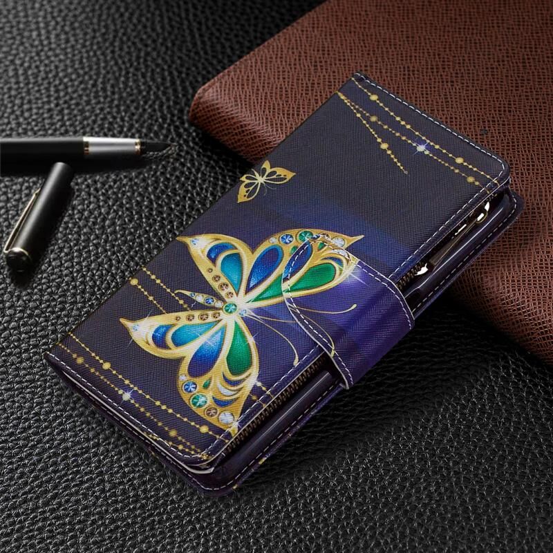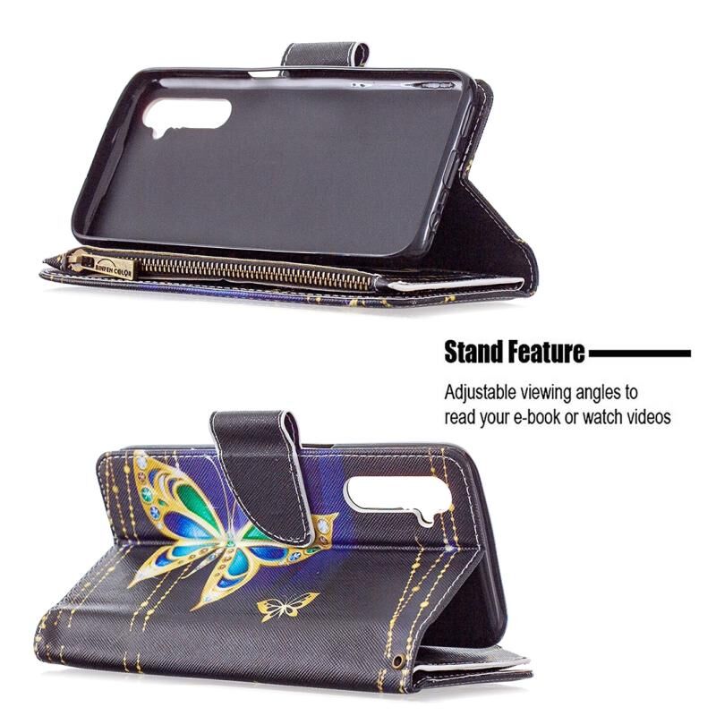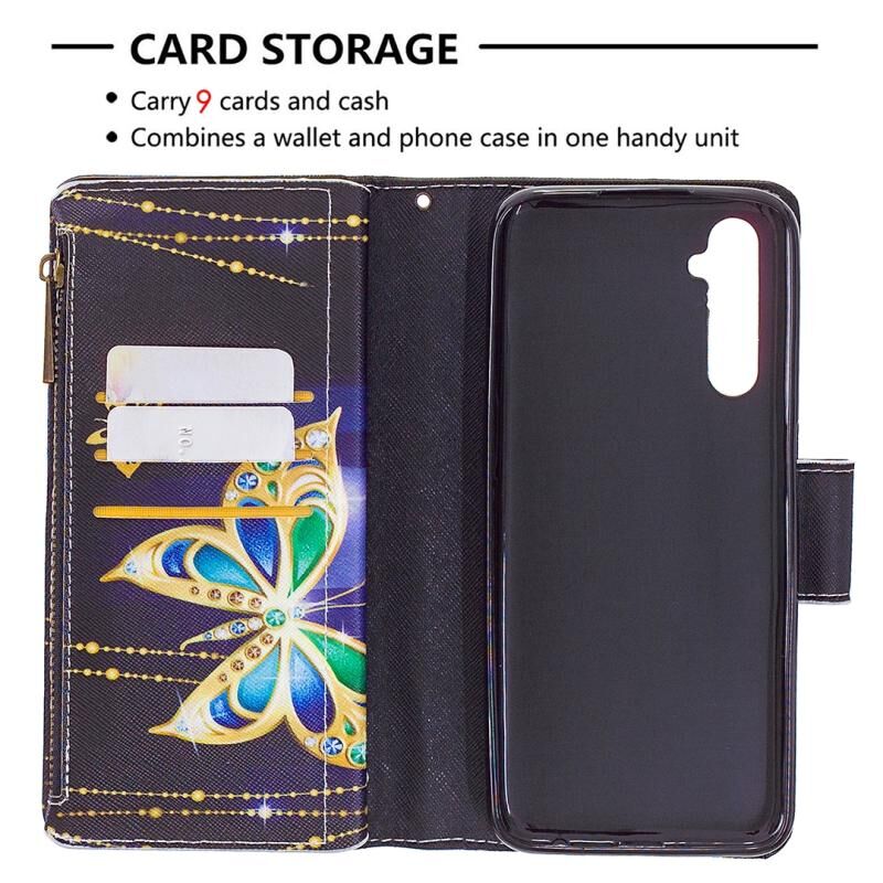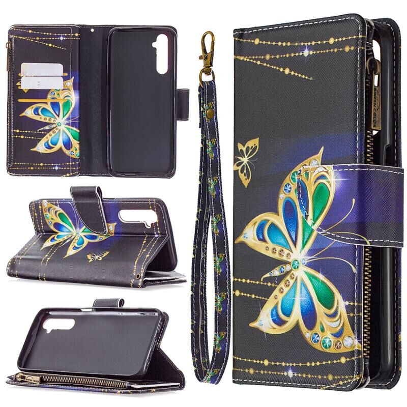 Θήκη δέρματος οριζόντιας αναδίπλωσης με φερμουάρ και σχέδιο ζωγραφικής για OPPO Realme 6 με βάση για κάρτες & θήκη πορτοφολιού (Μεγάλη Πεταλούδα)