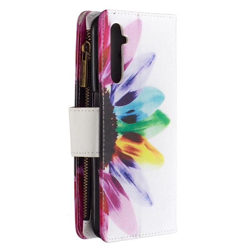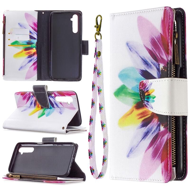 Θήκη δέρματος οριζόντιας αναδίπλωσης με φερμουάρ και σχέδια ζωγραφικής για OPPO Realme 6 με βάση για κάρτες και πορτοφόλι (Ηλιάνθος)