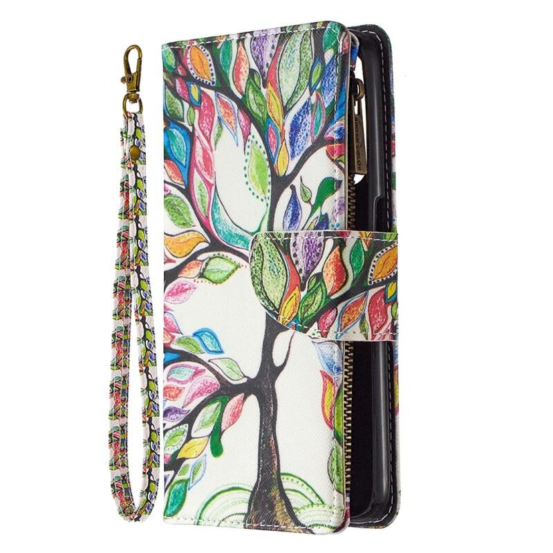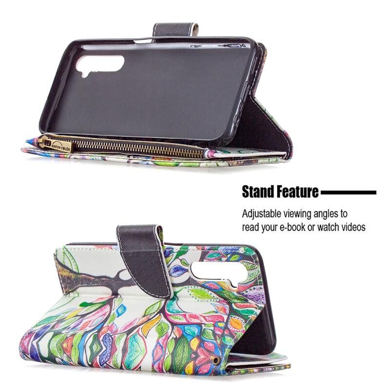 Θήκη δέρματος οριζόντιας αναδίπλωσης με φερμουάρ και σχέδιο ζωγραφικής για OPPO Realme 6 με βάση για κάρτες και πορτοφόλι (Δέντρο)