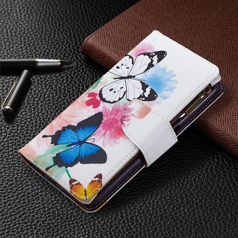 Θήκη δέρματος οριζόντιας αναδίπλωσης με φερμουάρ και σχέδιο ζωγραφικής για OPPO Realme 6 με βάση για κάρτες και πορτοφόλι (Δύο Πεταλούδες)
