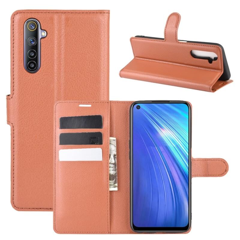 For OPPO Realme 6 Litchi Texture Horizontal Flip Protective Case with Holder & Card Slots & Wallet(Brown)
