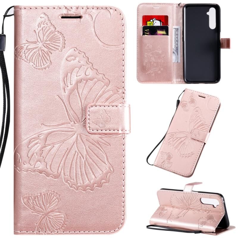 Για OPPO Realme 6 Pro 3D Πεταλούδες Embossing Μοτίβο Οριζόντια Δερμάτινη Θήκη με Στήριξη & Θήκη Κάρτας & Πορτοφόλι & Λουρί (Κίτρινο)