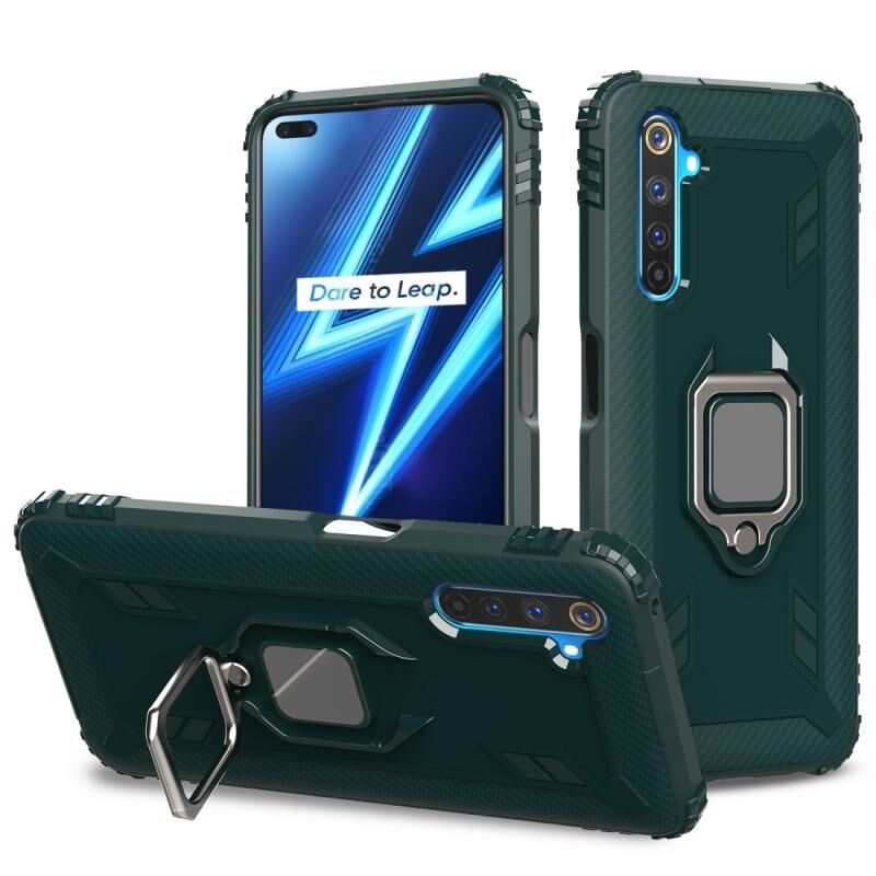 For OPPO Realme 6 Pro Carbon Fiber Protective Case with 360 Degree Rotating Ring Holder(Green)