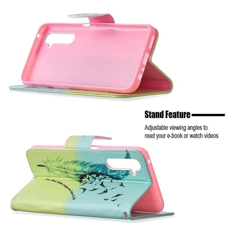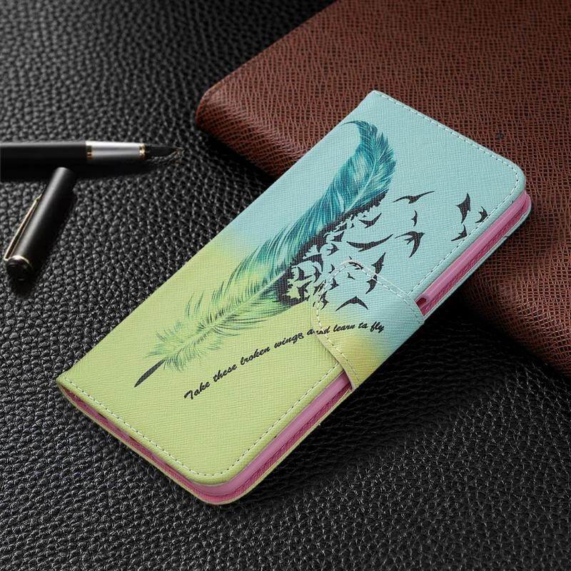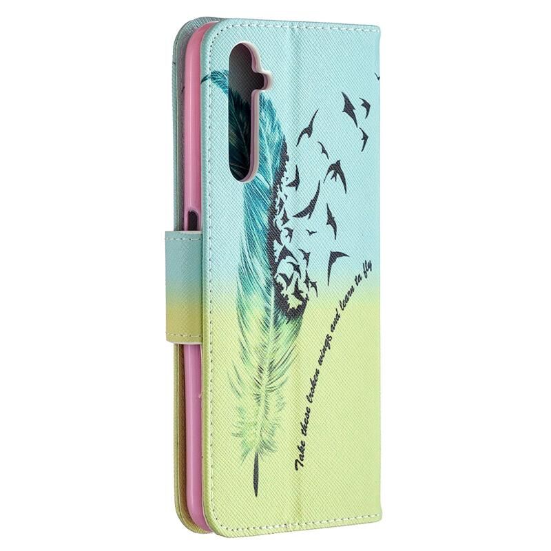 Θήκη δέρματος οριζόντιας αναδίπλωσης με σχέδιο πολύχρωμης ζωγραφικής για OPPO Realme 6 Pro με βάση & υποδοχές καρτών & πορτοφόλι (Φτερό)