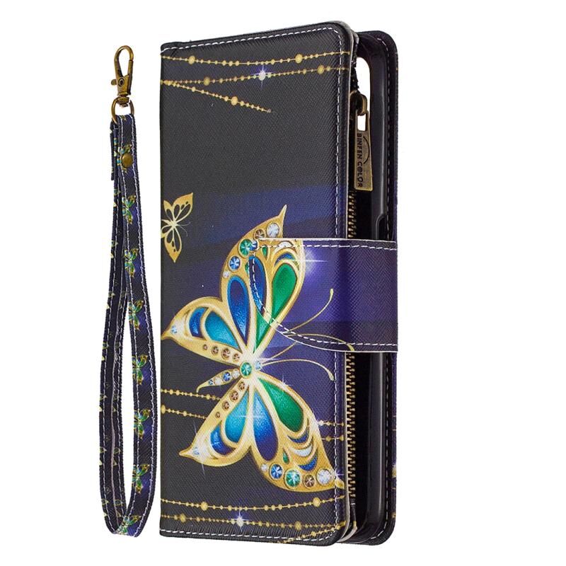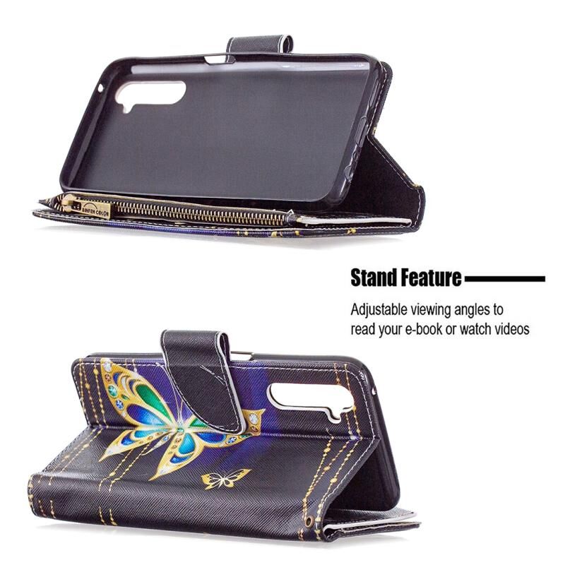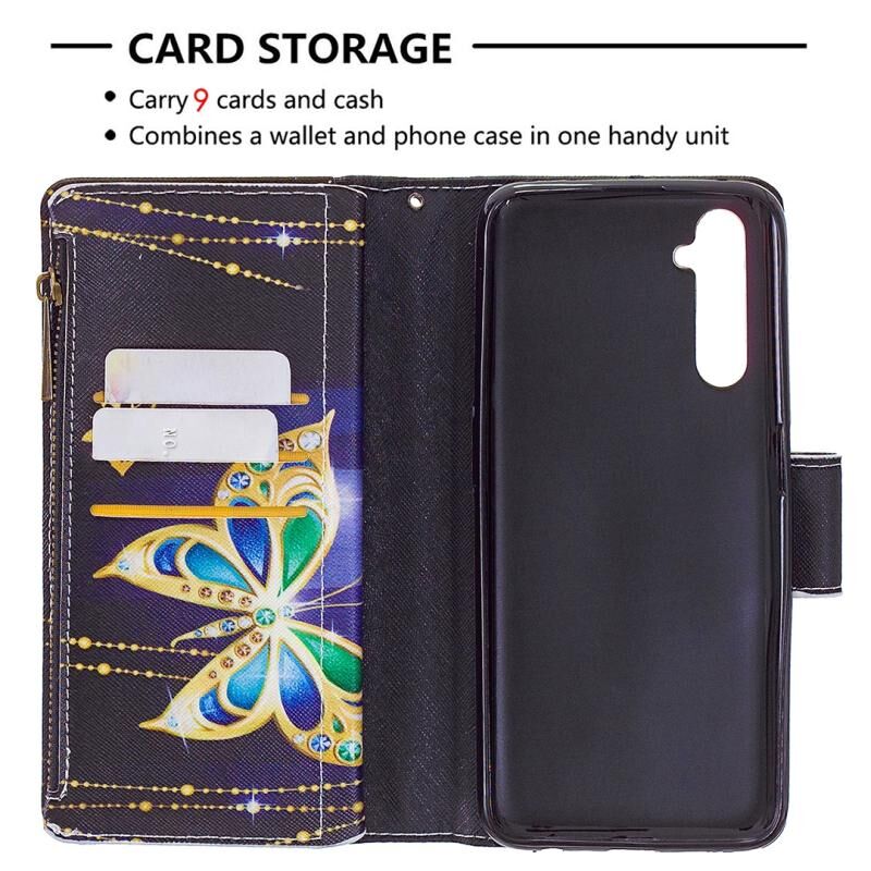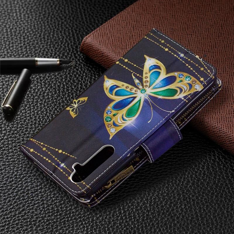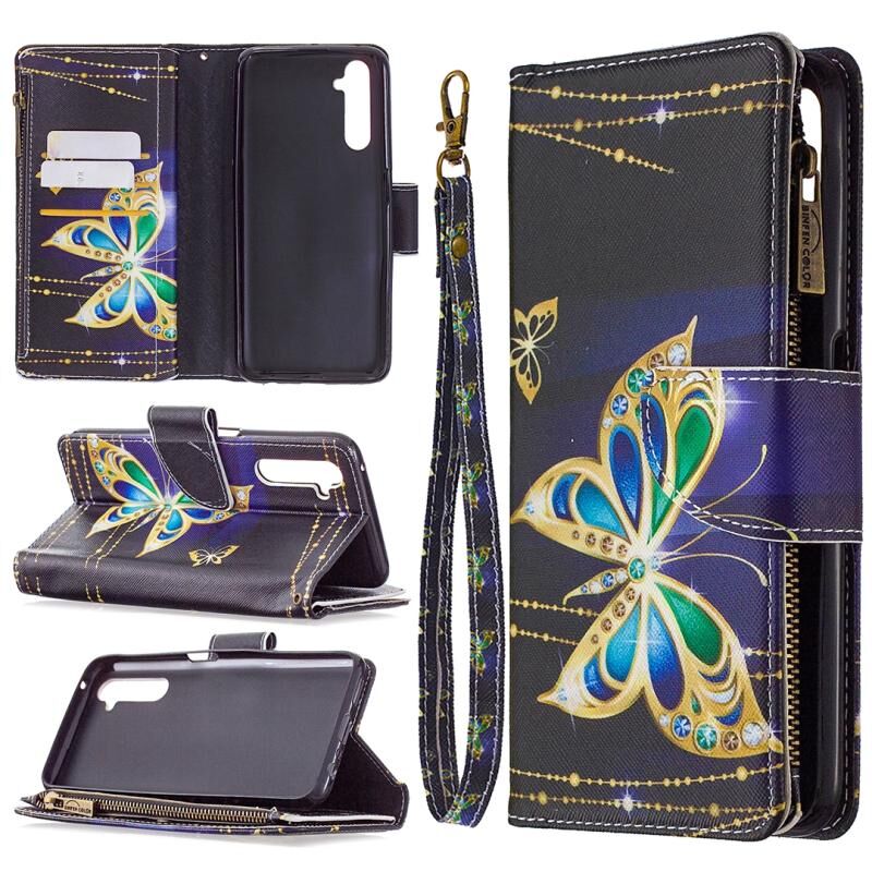 Θήκη δέρματος οριζόντιας αναδίπλωσης με φερμουάρ και σχέδιο ζωγραφικής για OPPO Realme 6 Pro με βάση στήριξης & υποδοχές καρτών & πορτοφόλι (Μεγάλη Πεταλούδα)