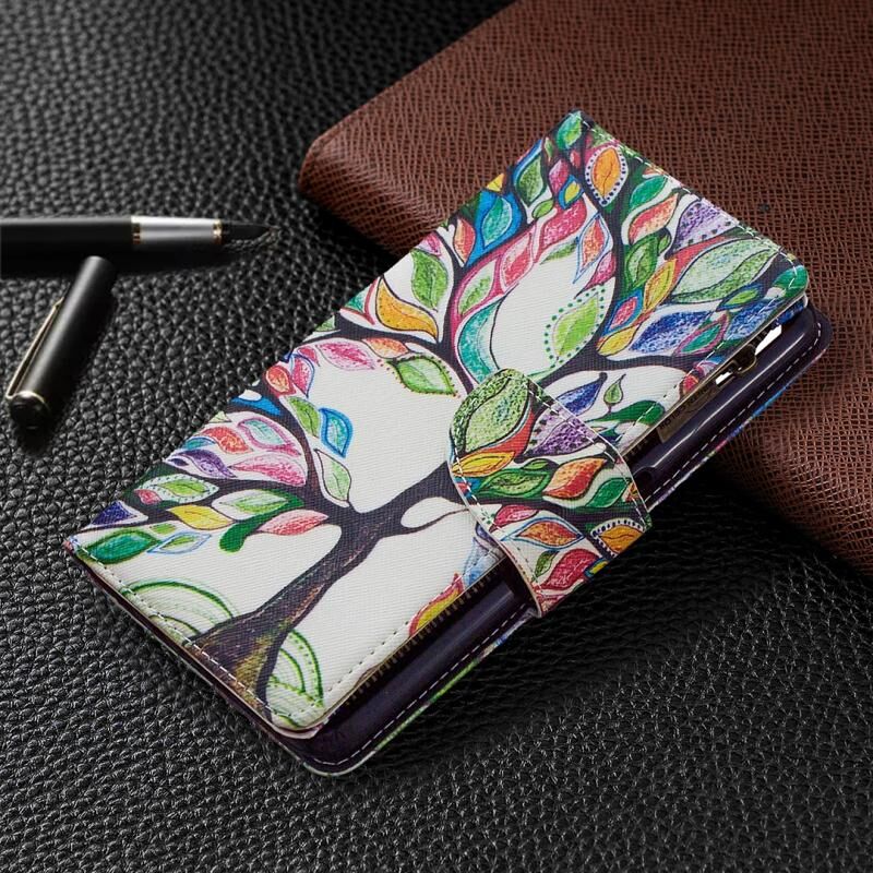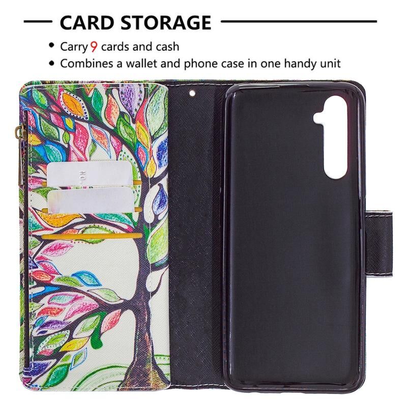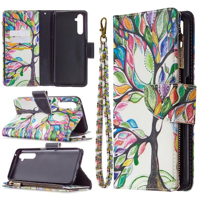 Θήκη δέρματος οριζόντιας αναδίπλωσης με φερμουάρ και σχέδιο ζωγραφικής για OPPO Realme 6 Pro με βάση στήριξης & υποδοχές καρτών & πορτοφόλι (Δέντρο)