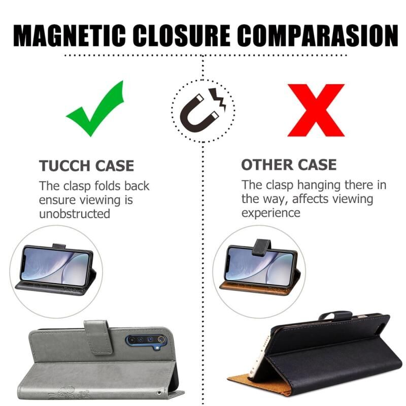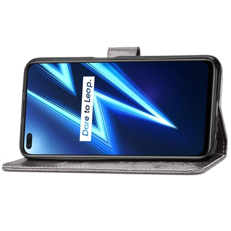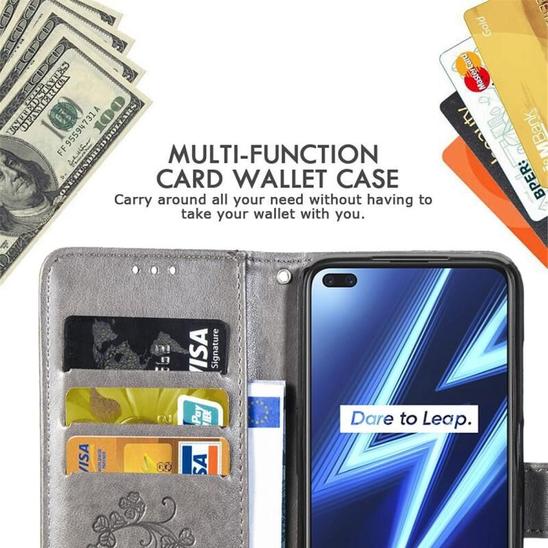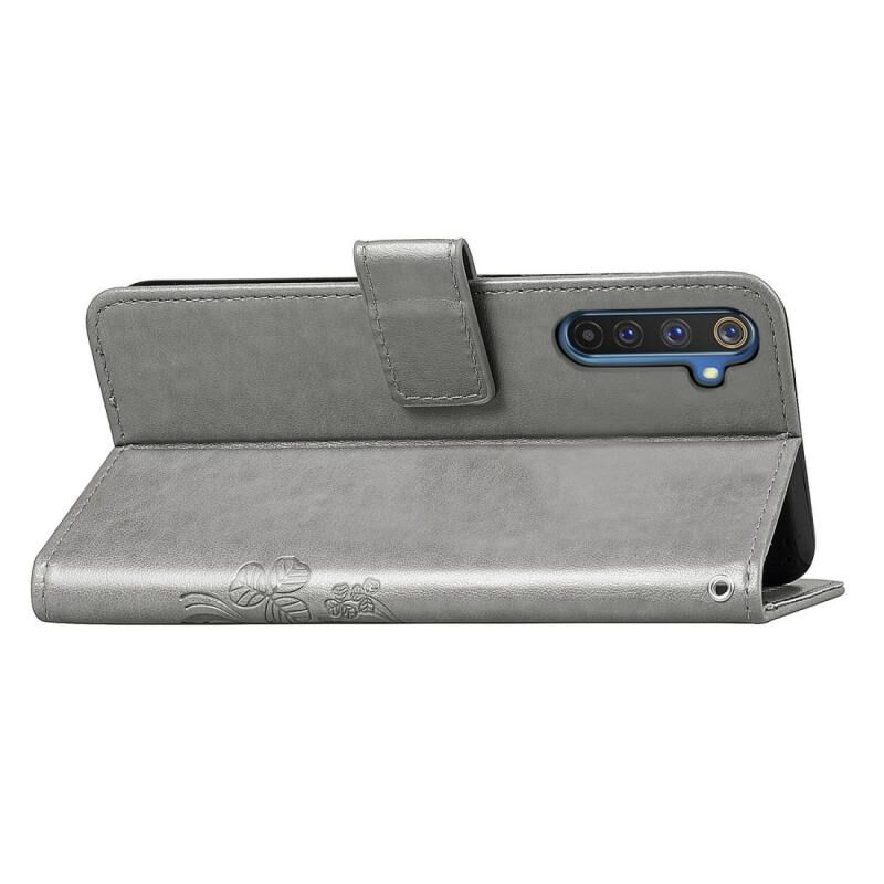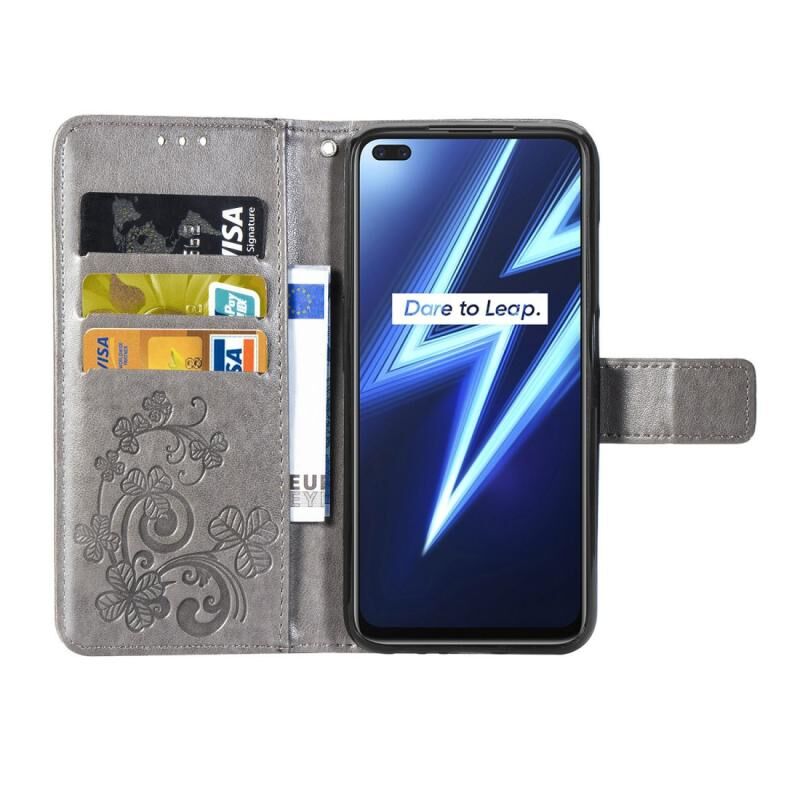 Για Oppo Realme 6 Pro Θήκη Δέρματος με Πατήματα Λουλουδιών Clover, με Στήριξη & Θήκες Καρτών & Πορτοφόλι & Λουρί Χεριού (Γκρι)