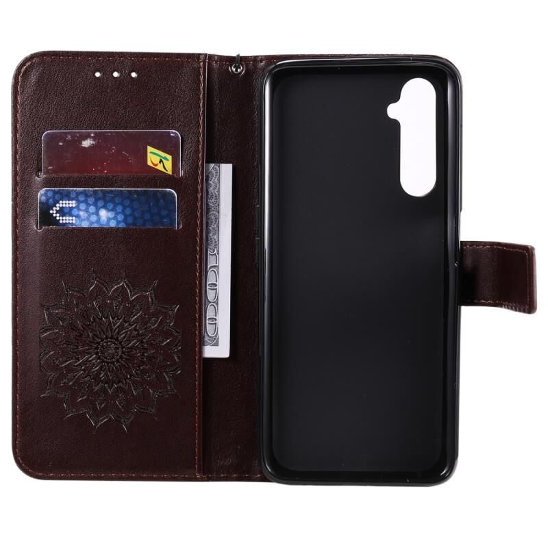 Θήκη για OPPO Realme 6 Pro με εκτύπωση ηλιοτροπίου, οριζόντια αναδίπλωση, από δερματίνη PU με βάση στήριξης, θήκες για κάρτες, πορτοφόλι & λουρί (Κόκκινο)